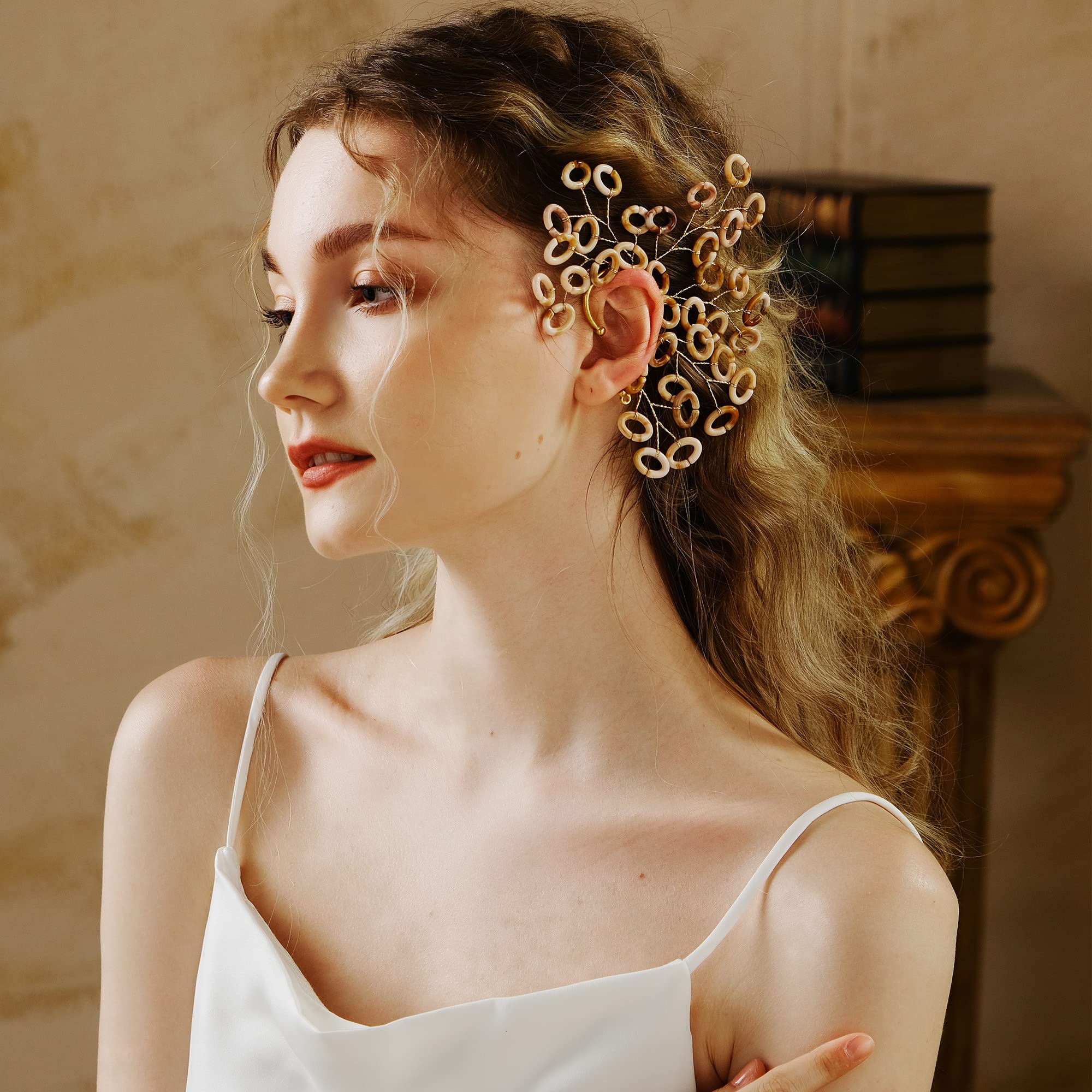 - 【Introduction】Handmade European and American fashion bridal fairy left elf ear cuffs earring, can be worn without piercing.