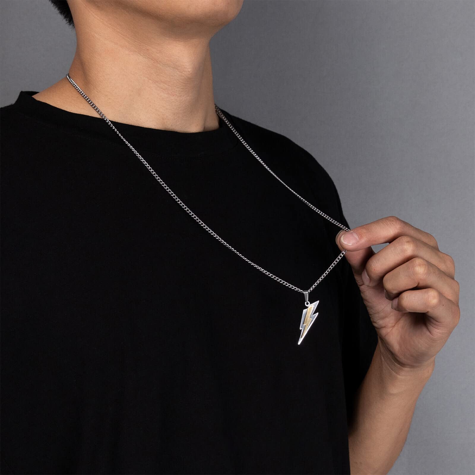 Yumikoo Golden Lightning Bolt Stainless Pendant Necklace for Men Women