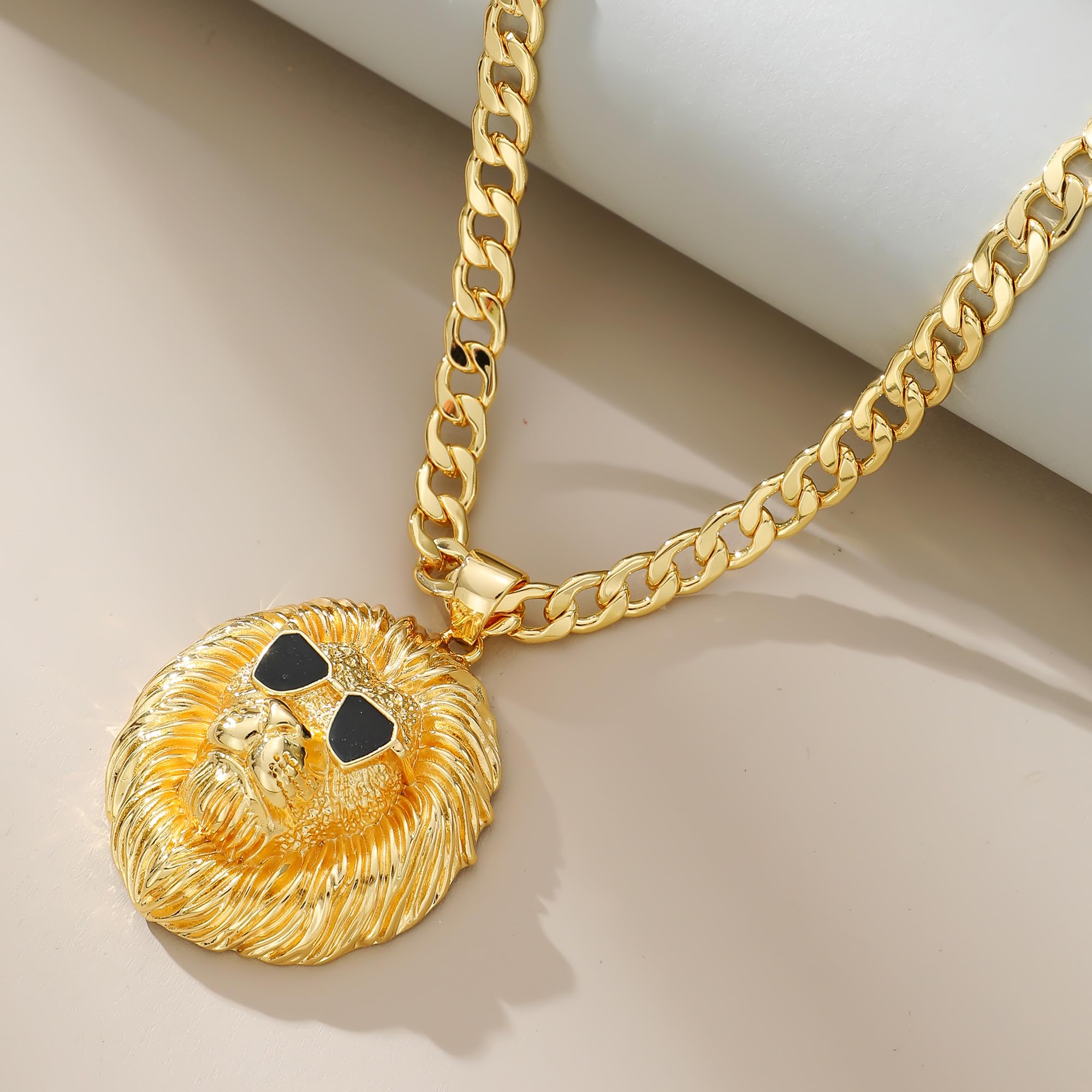 - 【Intriguing Design with Sunglasses】The pendant features a fierce lion head adorned with sunglasses, creating a unique blend of strength and modern fashion. This detail makes it a conversation starter and a bold fashion accessory .