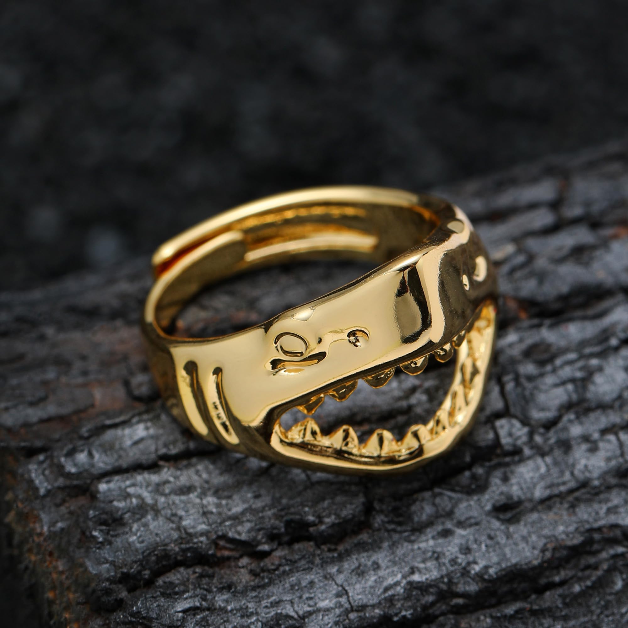 - Unique and creative design: This ring attracts attention with its unique shark-shaped design, integrating the ferocious marine shark element into the jewelry design, showing extraordinary creativity and personality. The shark's open mouth and sharp teeth are vivid in details, adding a touch of wildness and power to the ring.