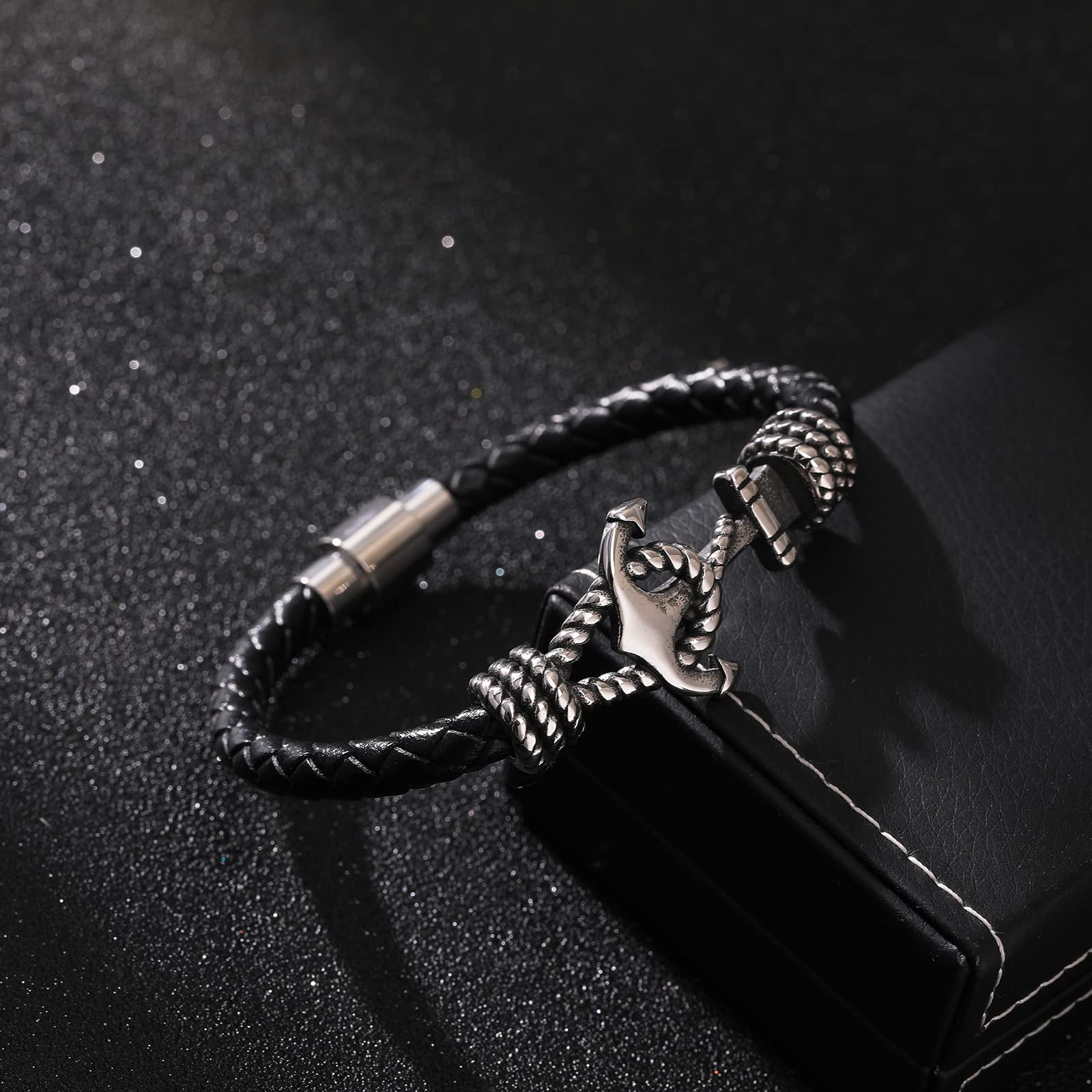 - 【Material】The bracelet is 7.3 inches long.The product is made of high-quality leather and stainless steel, and has the characteristics of corrosion resistance, wear resistance, and no peculiar smell.